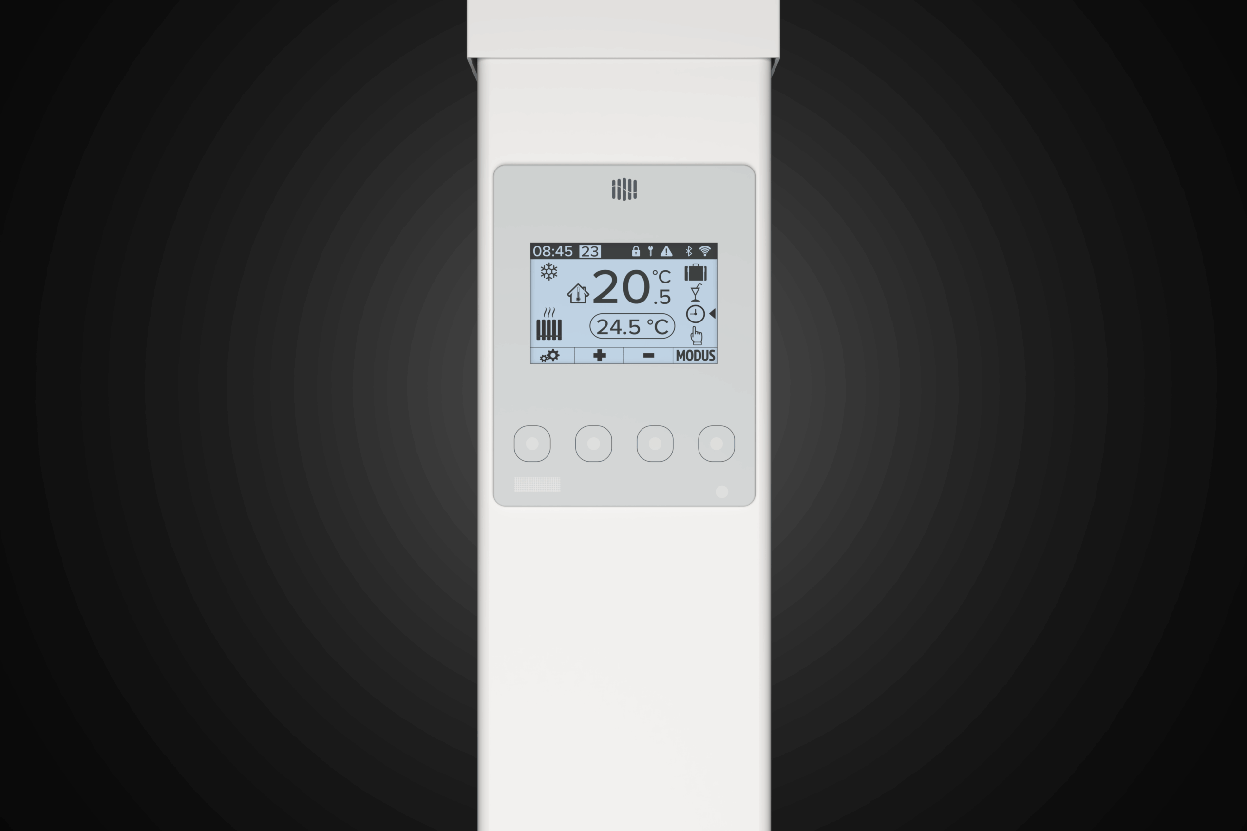 Wie macht das Seitenteil Ihren AeroFlow Heizkörper noch effizienter? Es stattet ihn mit modernen, smarten Funktionen aus. Dazu gehört beispielsweise die automatische “Fenster-offen-Erkennung”, die unnötigen Wärmeverlust vermeidet, wenn Sie lüften. Folglich heizen Sie nicht nur komfortabler, sondern schonen durch die intelligente Steuerung auch Ihren Geldbeutel.